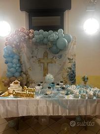 Torte scenografiche allestimento palloncini confettata bomboniere candele