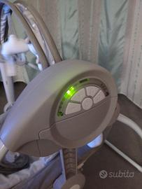 Bellissima altalena comprata e attualmente in vendita alla Chicco. Funziona a batterie ed ha cinque velocità e diverse musichette. si vende per inutilizzo!!