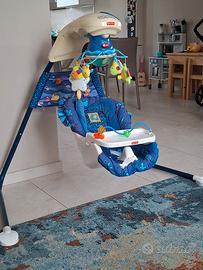 L' altalena Acquario Fisher Price ha 6 velocità rilassanti, la giostrina motorizzata con 4 peluches e il globo acquatico favoriscono lo sviluppo della vista del bambino.
