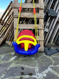 Titolo: Altalena bambini con schienale – ottime condizioni Descrizione: Vendo altalena per bambini in plastica resistente, completa di corde regolabili e schienale alto per maggiore sicurezza. Ideale per giardino o terrazzo. Colorata e robusta, perfetta per bambini piccoli grazie alla struttura avvolgente con protezione frontale. Condizioni: usata ma in ottimo stato, come da foto.