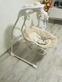 Diventa una sdraietta con seduta girevole che simula l'abbraccio della mamma. Dotata di giostrina girevola motorizzata, luci, melodie e suoni della natura, varie velocità di oscillazione e sedile asportabile per funzione sdraietta. Morbido e ricco riduttore a forma di orsetto, chiusura compatta adatto a bambini da 0 a 9 kg.