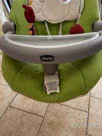 Altalena chicco adatta dai primi mesi . Con riduttore . Max 8/10 kg. Una volta funzionava ora non so perche servono pile 15v. Comunque si muove manualmente. Meglio il ritiro a mano.