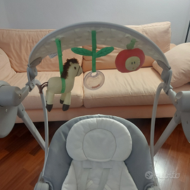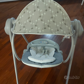 Vendo altalena polly swing della Chicco. Altalena elettronica per cullare il bambino dalla nascita fino ai sei mesi, dentro e fuori casa. Il pratico telecomando permette di attivare tutte le funzionalità anche a distanza. Movimento a dondolo con 4 velocità e dispositivo di vibrazione installato sulla seduta per garantire il massimo relax.