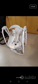 Passare da altalena a sdraietta non è mai stato piu semplice. L’impostazione automatica dell’oscillazione sarà calma e confortevole. Puoi trasformare l’altalena in una sdraietta vibrante fissa con il sistema EasyLock sicuro. Porta il comfort in viaggio con questa struttura pieghevol e compatta. Adatta a neonati da 0 a 9 mesi. Imbracatura a 5 punti. Cuscinetto riduttore per la testa. 5 velocità di oscillazione. 12 melodie rilassanti e 4 suoni della natura. Incluso arcogiochi con un peluche. Rivestimento sfoderabile e lavabile in lavatrice. Misure da aperta: L 77,47 x P 53,34 x H 60,96 cm. Prezzo nuovo 119 euro