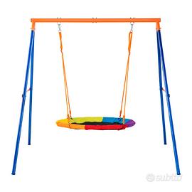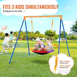 Elevata capacità di peso e costruzione robusta: questo set di altalene con telaio ad A può supportare fino a 440 libbre (199,6 chilogrammi), caratterizzato da una robusta struttura con telaio ad A e robusti picchetti da terra. Il suo design triangolare migliora la stabilità. Dotato di corde robuste e fibbie di sicurezza per prolungarne la durata. Sedile Premium: i nostri set di altalene da giardino sono dotati di un sedile in tessuto Oxford di alta qualità, noto per la durabilità e la resistenza del colore. Sono resistenti all'usura anche dopo un uso prolungato. Le corde in PE regolabili di alta qualità sono resistenti al sole e non sbiadiscono nel corso degli anni. Facile da installare: il telaio interamente in metallo di questa altalena per bambini è comodo da riporre ed è facile da montare. Segui le istruzioni dettagliate per riunirti con i tuoi bambini per trascorrere del tempo di qualità in famiglia e per migliorare le loro capacità motorie. Capacità di carico massima 440 libbre/199,6 kg Seduta rotonda 40 pollici / 101,6 cm Materiale del telaio in metallo tubo d'acciaio Materiale della seduta tessuto Oxford 900D Materiale della corda altalena corda in PE Gamma regolabile della corda 33,5-55 pollici / 85-140 cm