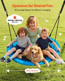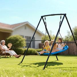 Struttura robusta: L'altalena da giardino può sostenere fino a 199,6 kg. La struttura in acciaio a forma di A forma una base stabile e triangolare e può essere fissata in modo permanente al terreno utilizzando gli ancoraggi a spirale inclusi Ampia seduta per altalena: Questa altalena a disco con struttura offre ampio spazio per sedersi e sdraiarsi nella sua seduta rotonda (40 pollici / 101,6 cm, blu e nero). Il design generoso aumenta il comfort durante il gioco ed è ideale per le attività all'aperto dei bambini Altezza regolabile: L'altezza della fune di sospensione può essere regolata in modo flessibile in base alle diverse corporature e preferenze di utilizzo. Questa altalena accompagna i bambini nella crescita Carico massimo 440 libbre / 199,6 kg Materiali principali acciaio al carbonio, tessuto in textilene, fettuccia in PE Dimensioni del prodotto 5,9 x 6,0 x 6,0 piedi / 1,8 x 1,84 x 1,81 m