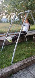 Vendo altalena da giardino Smoby, Dispone anche di un comodo seggiolino baby equipaggiato con barra di sicurezza per i più piccoli. La struttura in metallo e' molto forte e sicura.