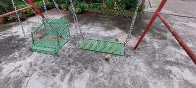 Altalena 2 posti in metallo verniciato,di manifattura artigianale/professionale, molto robusta, portata 200kg totali, smontabile per trasposto, predisposizione per fissaggio a terra.