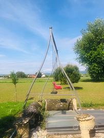 L'altalena doppia (telaio a 2 posti) è una struttura in ferro zincato di alta qualità che consente di allestire un parco giochi in giardino in modo facile, comodo e con garanzia di sicurezza per la famiglia. L'utilizzo di cuscinetti nelle staffe aumenta notevolmente il comfort di utilizzo dell'altalena.