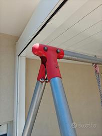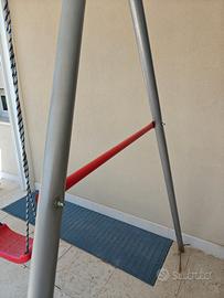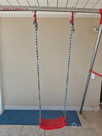 Vendo altalena Kettler doppia, in ottimo stato, colore grigio-rosso con ancoraggi nel terreno. I seggiolini sono regolabili in altezza tramite le corde. Due seggiolini + seduta con schienale e cintura di sicurezza.