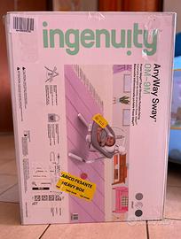 L'altalena compatta anyway sway di ingenuity offre al tuo piccolo un posto accogliente in cui sedersi, accoccolarsi e ondeggiare e regala alle tue braccia una meritata pausa. questa altalena portatile ruota di 180° e oscilla in 3 direzioni, tenendo il bambino sempre a suo agio e in vista. progettata per adattarsi allo stile di vita in continua evoluzione dei neo-genitori, anyway sway offre due modalità (altalena calmante o sdraietta vibrante) e possiede una giostrina per catturare l'attenzione del bimbo e intrattenerlo. dato che tutti i bebè sono diversi, il poggiatesta rimovibile sostiene i neonati e i bimbi più grandicelli fino a quando ne hanno bisogno. il motore silenzioso dell'altalena permette al bambino di riposare senza essere disturbato e il pad gentletouch può riprodurre 16 diverse melodie, 2 suoni della natura o rumore bianco impostando il volume a tua scelta. per collegare ed attivare anyway sway puoi utilizzare il cavo usb a risparmio energetico; grazie al suo design compatto e pieghevole l'altalena è portatile e facile da conservare. adatto dalla nascita fino a 9 mesi.