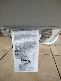 Adatta x neonati 3/9kg, 0-9mesi. Ha musica e 6 velocità. Cinture x fissaggio del neonato, che si copre con una protezione di tessuto.