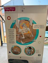 Altalena per neonati automatica con regolatore velocità di oscillazione e musichetta per favorire il rilassamento del lattante. Funziona a batterie come in foto. Sfoderabile e lavabile previo utilizzo. Non presenta macchie indelebili. Con scatola ottimo stato di conservazione.