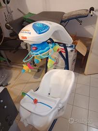 Altalena Fisher Price Cradle Swing per neonati. Il design è ispirato al mondo marino con simpatici pesciolini colorati.