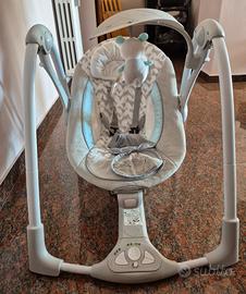 Passare da altalena a sdraietta non è mai stato piu semplice. L’impostazione automatica dell’oscillazione sarà calma e confortevole. Puoi trasformare l’altalena in una sdraietta vibrante fissa con il sistema EasyLock sicuro. Porta il comfort in viaggio con questa struttura pieghevol e compatta. Adatta a neonati da 0 a 9 mesi. Imbracatura a 5 punti. Cuscinetto riduttore per la testa. 5 velocità di oscillazione. 12 melodie rilassanti e 4 suoni della natura. Incluso arcogiochi con un peluche. Rivestimento sfoderabile e lavabile in lavatrice. Misure da aperta: L 77,47 x P 53,34 x H 60,96 cm.