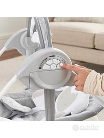 Altalena automatica in perfetto stato, come nuova (acquistata in primavera 2023). Leggera e ripiegabile, si appiattisce completamente per essere trasportata ovunque. 6 velocità di dondolamento con timer di spegnimento automatico a 3 tempi (30, 45 e 60 minuti) e 12 melodie rilassanti. 2 posizioni di reclinazione. Arco giochi con peluche removibile. Colori neutri adatti a femminuccia o maschietto. Peso max neonato 9 kg. Rivestimento completamente sfoderabile e lavabile in lavatrice. Peso articolo: 1,85 KG. Dimensioni da aperta: 57,2 x 72,4 x 58,4 cm. Pile necessarie: 4C.