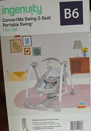 Vando,causa doppio regalo, altalena Injenuity con diversi livelli di velocità e possibilità di suoni musicali o naturali. Dotata di cinture di sicurezza per fare divertire i piccoli in tranquillità.