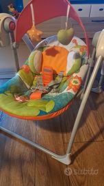 Altalena neonato richiudibile. Funziona a batterie ma può anche essere collegata ad alimentatore come da foto. Presenta copertura reclinabile in più posizioni con 2 pendagli, uno a specchio e uno con sonagli al suo interno. un po' rovinata la scritta Cam