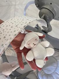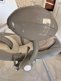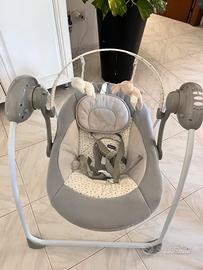 Altalena perfettamente funzionante con musica e movimento elettronico regolabile per cullare il bambino. Molto utile per addormentarlo o distrarlo durante le faccende domestiche tenendolo sempre in sicurezza. Presenta una piccola imperfezione nel coperchio che chiude le pile (vedere foto) ma che non me compromette il funzionamento.Pagato 95€
