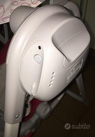 Utilizzata ma tenuta in modo perfetto e totalmente integra! La mia bimba ha usurato il telecomando con le funzioni musicali, resta attivabile solo il movimento oscillatorio a 4 velocità che si può comandare anche dal pulsante in alto alla struttura. La vibrazione della seduta si comanda dal tasto centrale on/off. L altalena è richiudibile e compatta, da chiusa resta in piedi da sola. Dotata di seggiolino imbottito e traspirante con riduttore estraibile sfoderabile e lavabile, cintura e spartigambe, schienale reclinabile in 3 posizioni. Ha un doppio vassoio di facile pulizia e removibile. In dotazione la tendina parasole regolabile e 3 giochini pendenti da poter togliere. Perfetta in casa o all esterno per il relax, i primi giochi e per lo svezzamento! Incluse pile/batterie e completa di scatolone originale.