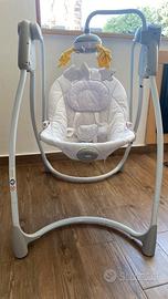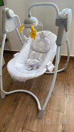 Altalena per bimbi BREVI in ottimo stato, seduta con più posizioni, giostrina con luci, musica e suoni natutali, funzionalità sia elettrica che a batterie, infresso USB per poter mettere musica a scelta, vassoio baby.