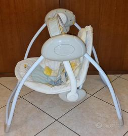 Questa altalena riconosce il peso del bambino e regola il movimento per mantenere costante la velocità. Mantiene 6 velocità in funzione della crescita del bambino. La funzione Comfort Recline offre 2 diverse posizioni di reclinabilità per il riposo ed il gioco. 6 dolci melodie aiutano a calmare e rilassare il bambino. La sua chiusura compatta consente di riporla e trasportarla facilmente.