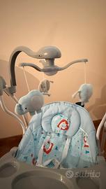 La sdraietta a dondolo nunù è dotata di schienale reclinabile in 3 posizioni; 5 velocità di oscillazione; 12 melodie; 3 timer per lo spegnimento programmato; barra dei giochi con luci. La fodera della seduta è removibile e lavabile. Funzionamento a batteria o con adattatore incluso nella confezione. Risulta come nuova in quanto mio figlio l’ha usata pochissime volte.