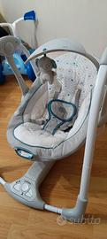Caratteristiche: Design compatto e pieghevole, ideale anche per piccoli spazi. Diverse velocità di oscillazione, timer e melodie rilassanti. Dettagli: Arco giochi incluso con simpatico peluche a forma di elefante. Imbracatura di sicurezza a 5 punti. Stato: Usato garantito, ottime condizioni estetiche e funzionali. Per ulteriori foto e info contattatemi tramite whatsapp al: 3886593698