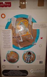 Altalena, Seggiolino e Dondolino: 3 prodotti in 1! Un’altalena per i più piccoli a 6 velocità, con 16 melodie, suoni della natura rilassanti e un arco giochi removibile. Una sdraietta fissa adatta all’ora della pappa, della nanna e del gioco. Inoltre è anche un seggiolino a dondolo per i bambini fino a 18 kg di peso! Con la modalità altalena, la SmartSwing Technology integrata offre fino a 6 velocità di oscillazione diverse per trovare l’impostazione più adatta per far rilassare il vostro bambino. L’altalena è dotata di un sensore per il peso (quindi non rallenterà con il crescere del bambino) e si attiva senza bisogno della spinta! Il seggiolino è facilmente removibile dal telaio dell’altalena per essere sfruttato come postazione fissa o dondolino. Inoltre il comodo seggiolino a dondolo può reggere fino a 18 kg di peso, così il vostro bambino potrà continuare ad usarlo anche da “grande”! Peso massimo per l’altalena o seggiolino/dondolino reclinabile: 9 kg. Peso massimo per il seggiolino/dondolino in posizione eretta: 18 kg.