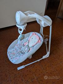L'altalena Ingenuity 2 in 1 ti permette di passare dall'altalena alla sdraio rilassante e vibrante. Dispone di un processore in grado di regolare la velocità dell'oscillazione calcolando il peso del bambino . Può anche riprodurre fino a 8 melodie e 3 suoni che imitano la natura. La tecnologia Whisper Quiet consente al tuo bambino di dondolarsi silenziosamente.