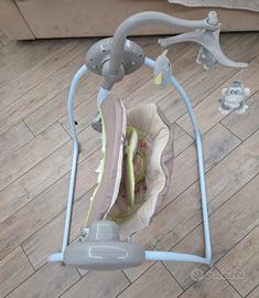 Puoi impostare un timer e in più ha il tasto musica, per accompagnare il movimento con delle dolci canzoncine per la ninna nanna.