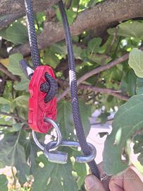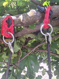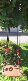 Vendo altalena in legno pronta all’uso: con i moschettoni basta un ramo o una trave e potete dondolarvi. Le corde ed i moschettoni permettono l’utilizzo da parte di un adulto (circa 70Kg). Le corde sono lunghe 2,5m ciascuna ed il meccanismo e’ regolabile facilmente. L’altalena non ha segni di usura.