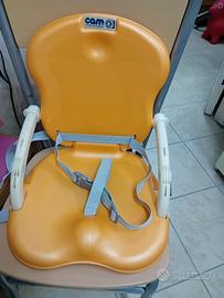 ALZASEDIA CAM IN OTTIME CONDIZIONI CON VASSOIO E CINTURE PER LEGARE IL SEGGIOLINO ALLA SEDIA.