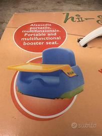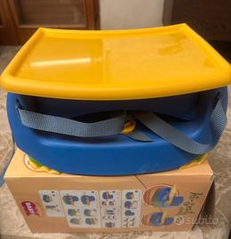 Alza sedia portatile multifunzionale OK Baby, ideale per i più piccoli. Facile da trasportare e da usare.