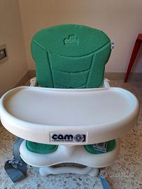 Alzasedia Cam, chiusura compatta, vassoio rimovibile, seggiolone da viaggio.