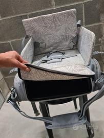 È una comoda borsa con una seduta rigida e un rinforzo laterale per far sedere comodo il bambino.