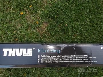 2x Thule Infant Sling (Amache Neonato) per Carrellini Thule – Come Nuove Testo: Vendo coppia di amache Thule Infant Sling, l’accessorio fondamentale per trasportare i più piccoli (1-10 mesi, fino a 10kg) nel tuo rimorchio Thule in totale serenità. Avendone due, sono la soluzione perfetta per chi ha un carrellino biposto e gemelli. Caratteristiche tecniche e vantaggi: Sicurezza Certificata: Progettate specificamente da Thule per garantire la posizione corretta della schiena del neonato durante il trasporto. Comfort Superiore: Struttura imbottita studiata per offrire il massimo supporto laterale e una stabilità ottimale, evitando scivolamenti o posture errate. Compatibilità Universale: Si installano facilmente sulla maggior parte dei rimorchi Thule Chariot, Xcoaster e molti altri modelli della gamma. Kit Completo: Incluse le scatole originali, i manuali e tutto l’hardware di montaggio (comprese le barre metalliche visibili in foto). Stato del prodotto: Usate pochissimo, pulite e senza alcun segno di usura. Gli attacchi e le cinghie sono integri e perfettamente funzionanti.