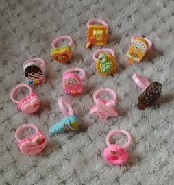 12 anelli colorati per bambini con disegni di cuori, stelle, gelati e donut