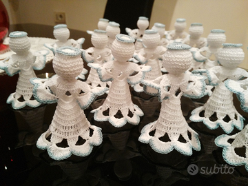 Angioletti lavorati all'uncinetto in cotone e poi inamidati, sono alti circa cm 10 bianchi rifiniti nel colore che si desidera Eseguo su ordinazione
