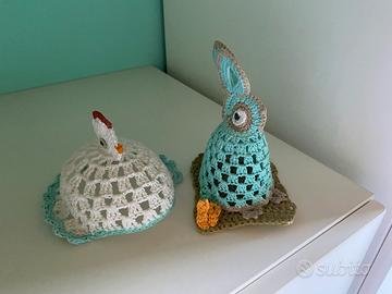 Coppia di animaletti fatto ad uncinetto. Possibilità di nascondere delle piccole uova di cioccolato. Perfetto come pensiero per Pasqua Fatti a mano