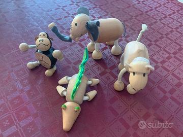 Vendo 4 animali in legno alti 10 cm: elefante, pecora, coccodrillo e scimmia.