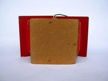 Originale degli anni 50. Scatolina in legno dipinto a forma di casetta con il tettuccio che si apre come da foto. Era un portamerenda per l'asilo. Dimensioni cm 19 x 11,5 x altezza cm 19 ( senza calcolare la maniglietta) Spedisco.