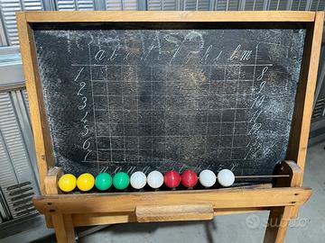 Il vecchio banco di scuola pieghevole che permette di essere usato anche come lavagna