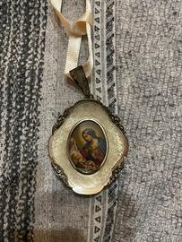 Grande medaglione argento silver capoculla di madonna e gesu bambino antichissimo contatto whastapp