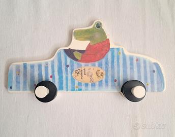 Appendiabiti per camera da letto dei bambini. Con un simpatico coccodrillo al volante.Usato. Segni di usura (come mostrato nelle fotografie):