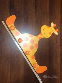 Appendiabiti in legno a forma di giraffa, per decorare la cameretta dei bambini.