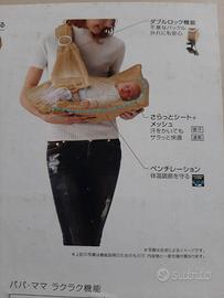 Fascia porta bebè Aprica, molteplici posizioni, completa di scatola e accessori originali, con istruzioni, in shantung color verde mela. Mai usato, regalo doppio