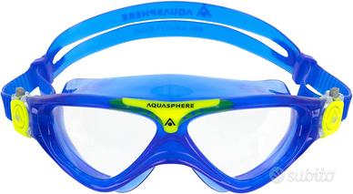 Marchio: Aquasphere Colore:blu e giallo Colore lenti: trasparenti Materiale: plastica Materiale della cornice: silicone Caratteristiche speciali: lenti anti-appannamento con protezione dai raggi UV, regolabile. IN OTTIME CONDIZIONI!!