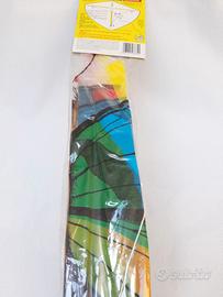 Kit pronto confezionato per la costruzione dell’aquilone in tela forma farfalla multicolore , verde azzurra blu arancione .
