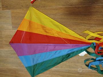 Aquilone arcobaleno, strisce di 3 m. Filo di 40 m + altro filo di 40 m